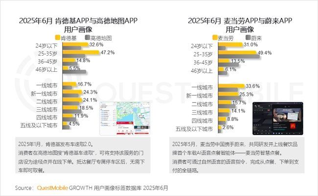 Ⅲ. 肯德基携手高德地图推出“沿街取”服务,技术与服务融合提升用户便利;麦当劳与蔚来合作车载AI语音点餐,加速数字化转型,优化用餐体验