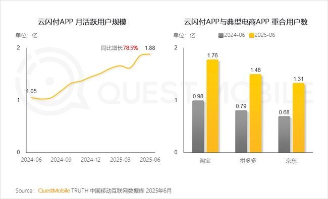 Ⅲ. 国补政策驱动下,云闪付6月MAU突破1.88亿,同比增长率达到近80%,与淘宝、拼多多、京东三大电商平台用户高度重合,形成“云闪付领补贴-电商平台消费” 的闭环生态