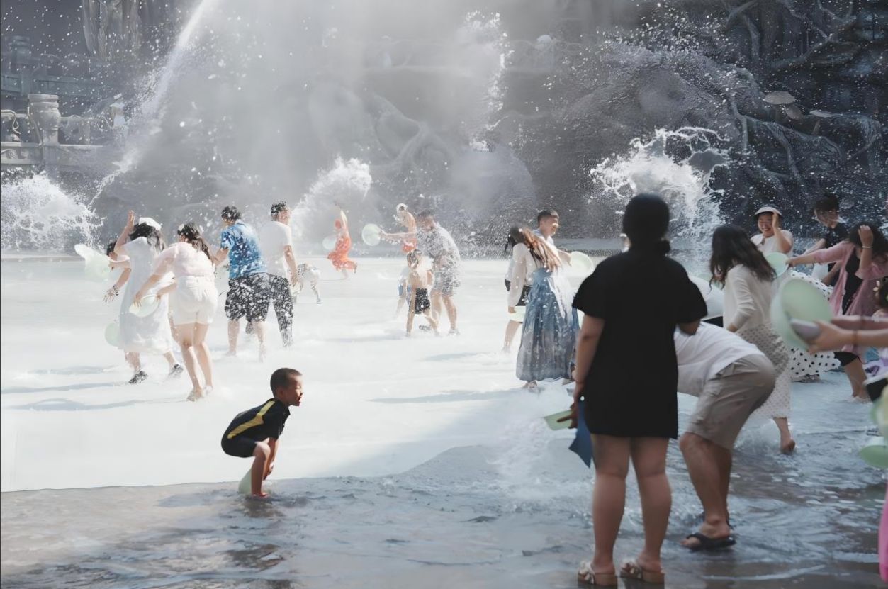 夏日的景区,活力满溢。每日 14:00 与 16:00,“版纳超泼” 泼水狂欢准时登场,成游客释放热情的绝佳舞台。取水、祈福等民族风俗互动感拉满;伴着傣族古乐、水花飞溅中、热带狂欢的终极浪漫绽放,让游客深度体验西双版纳泼水节的独特魅力。