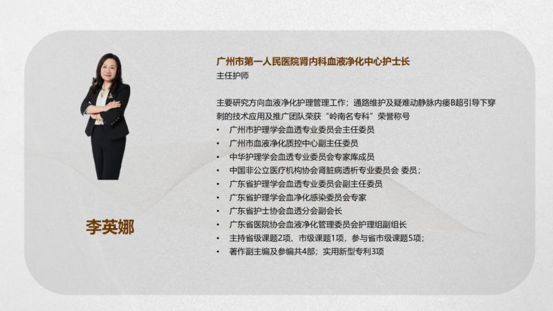 广州市第一人民医院肾内科透析通路中心是国内最早由肾内科医生主刀开展血管通路手术的中心之一,是广东省医学会血液净化学分会介入肾脏病学组副组长单位、广州市医学会血液净化学分会血管通路学组组长单位。可开展全系列的透析通路手术,包括自体动静脉内瘘成形术、人造血管旁路移植术、长期导管的建立和维护、内瘘并发症的经皮血管腔内成形术、腹透漂管介入矫正术等。中心工作理念:为每一位透析患者建立合适的透析通路!