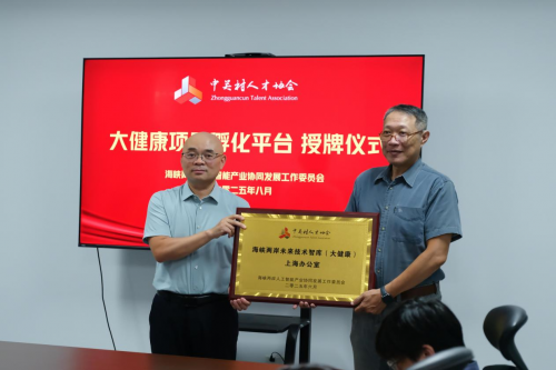 为了更好地促进海峡两岸优质大健康项目的落地和产业化,2025年8月6日,中关村人才协会海峡两岸人工智能产业协同发展工作委员会(以下简称“工委会”),正式授予海易特医疗科技(上海)有限公司“大健康项目孵化平台”资质。本次授牌仪式在海易特医疗科技上海总部举行,工委会会长李正、海易特医疗科技董事长范卫东共同出席了授牌仪式。