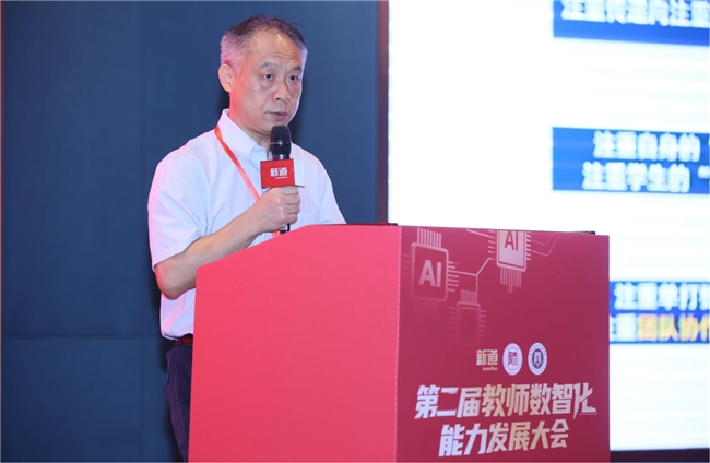 华中师范大学国家级文科综合实验教学示范中心主任,教育部高等学校教学信息化与教学方法创新指导委员会秘书长杨九民聚焦“人工智能驱动教师专业发展”作演讲。他认为,教育数字化背景下教师角色需要从注重传递向注重引导的转变、注重自身的“教”向注重学生的“学”转变、注重单打独斗向注重团队协作的转变。杨九民强调,教师要理性审视技术边界新认知,教师不是成为“AI专家”,而是成为人机协同的领导者、高阶思维的引导者、终身学习的推动者。他表示,改变教育,要从改变教师自身开始,如何在传承与创新中保持平衡考验着教师的智慧。