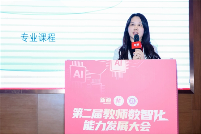 新道科技股份有限公司助理总裁刘莉聚焦“解锁数智能力:数智时代高校教师专业发展新路径”进行分享。她表示,产业“智”变呼唤人才“质”变,数智时代下,新质人才需要更懂产业、更懂数据、更懂技术,“人工智能”与“产教融合”能力是高校教师数智化能力提升的核心,也是实现专业发展的关键所在。刘莉在演讲中介绍了新道“学-行-研-评”四维一体的教师数智化能力培养模式中的以学筑基:“四融合”教师数智化能力提升内容体系;以学筑基:定制研修,推动教师数智化深度共进;以研促创:新道课程设计与教学方法论;以评增效:数智名师工程,打造教学标杆等内容。最后,她正式发布新道赋能专项行动计划:U8数智焕新、合作师资招募、课题发布、AI+产业赋能。