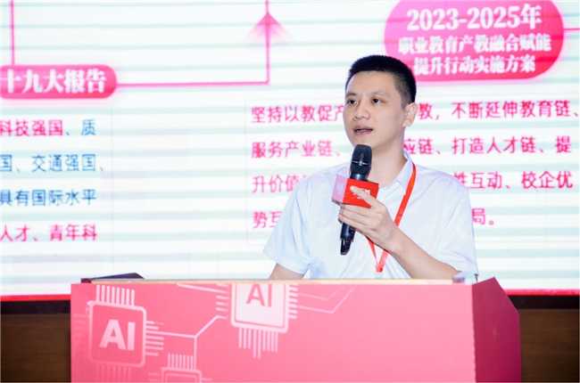 新道科技股份有限公司新工科教育规划顾问金星伟聚焦“基于产业场景的数智工科教师能力提升的创新与实践”作演讲。他提到,工科教师面临着知识-技能-场景三重脱节的能力困境。金星伟介绍,新道科技“产业场景实验室”通过课程、案例、产线把企业搬进学校,把课堂开进车间。同时,新道科技以用友产业真案例,把数智产业融入教学实践课程,重构“课程体系”。他分享了大数据制造业应用场景教学实践、工业软件开发具有制造行业特色的人才培养模式、人工智能工业应用场景教学实践、工业互联网引入产业生产环境用友YonBIP等用友真案例,以及新道科技与中国农业大学、郑州工商学院,江苏食品药品职业技术学院等院校联合培养新型人才的案例。