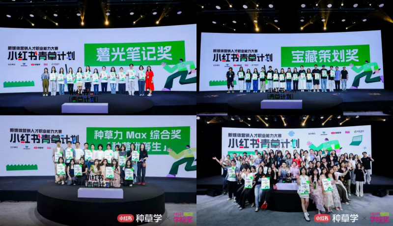 当日下午,由中国青年创业就业基金会、小红书种草学、中国大学生广告艺术节学院奖、创意星球网联合发起的新媒体营销人才职业能力大赛-小红书青草计划,历经百余天的激烈角逐,通过线上线下种草课堂、实战课题演练、认证考试及多轮评审,决出10支优秀团队来到现场,带来最终的种草Roadshow,激烈角逐“种草力Max综合奖”。