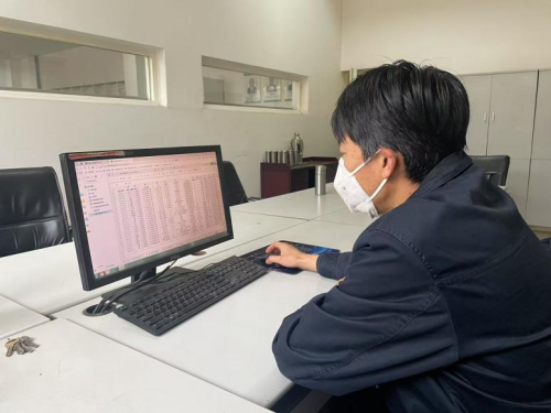 图为:周师傅在数据运维平台查看备件信息(苏雪苗/摄)