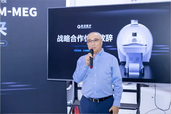 目前,已有北京市北科数字医疗技术有限公司等多家机构与昆迈医疗达成战略合作,共同推进脑磁图技术的临床转化。北科数字医疗总经理 尚洪雷先生作为战略合作伙伴进行了致辞,从产业协同视角解读了这一技术突破的行业价值。尚总介绍到:“北科医疗20余年来深耕神经外科领域,始终以‘为临床提供最先进的产品与解决方案’为核心目标,见证并参与了中国神经外科从经验诊疗向精准诊疗的转型历程。神经外科的发展离不开高端装备的支撑,而脑磁图正是精准诊疗时代的关键拼图。”他强调,北科医疗与昆迈医疗的合作,源于对“技术创新推动医疗进步”这一理念的高度共识。未来北科医疗将充分发挥在临床渠道等方面的优势,与昆迈医疗共同推进脑磁图技术的普及落地。