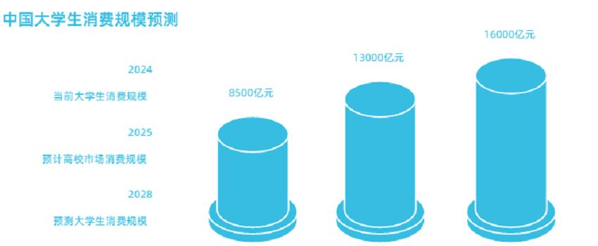 中国高校消费市场正日益成为经济发展中一股不可忽视的力量。根据蓝皮书对外透露的消费规模预测显示预计到2025年,中国高校消费市场规模将突破万亿大关;而2024年中国在校大学生的年度消费规模已达约8500亿元,预计至2028年将增至1.6万亿元,年均增长约5% 。这些数字表明,高校消费已不再是单纯的“象牙塔经济”,它正日益折射出中国整体消费升级的趋势。