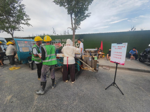 杭州公司在项目建设期间,组织人员及时为项目工地人员发放防暑降温物资,如绿豆汤、凉茶、冰棍等,保证物资的质量和数量,满足工人在高温天气下的防暑需求。同时,公司开展送爱心晚餐活动,为工地人员免费发放面食、饭食等,并加强对防暑降温物资的管理,确保物资发放到位。