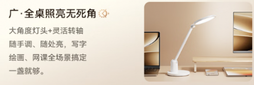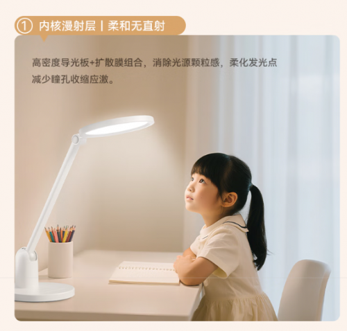 其中心照度超国AA标准115%且显色指数达Ra98.9,有效解决书写光照昏暗和书本颜色失真等痛点。