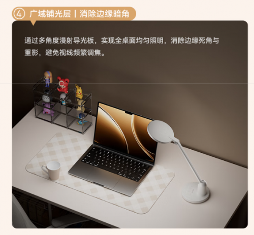 广域铺光层:通过多角度漫射导光板,实现全桌面均匀照明,消除边缘死角与重影,避免视线频繁调焦。