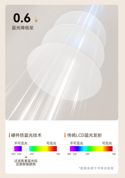 采用SunSilk™芯片从源头抑制有害蓝光,同时配合硬件级低蓝光将蓝光峰值降低至0.7。
