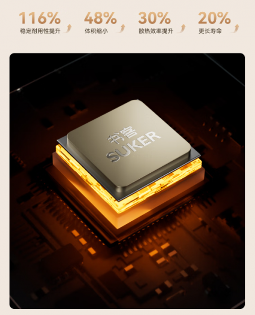 书客SKY护眼台灯搭载新一代旗舰级光电处理器,先后通过超五万次极限热循环、耐高温及耐久稳定性等严苛测试。其不仅使用寿命显著延长,散热效率大幅提升,稳定耐用性更是提升116%,可持续输出高品质柔光,为孩子打造全天候超舒适的健康视觉体验。