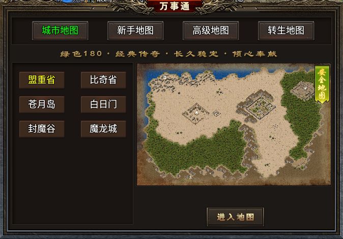 在世界观上,《开夏复古小极品》没有太花哨的设定,玩家在新手村升到30级后,直接进入已经被老玩家们刻进DNA的盟重省地图,从NPC万事通那里就能前往所有的副本地图。地图按照等级来划分门槛,50级以下的新手大陆有沃玛寺庙、牛魔寺庙、未知暗殿等,54到65级能进入幽冥之地、诡秘沉船、云霄仙域等高级地图,转生后还能开启冰河雪域、无间炼狱和无尽星空等地图。