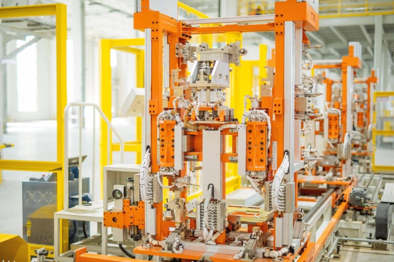 图:海尔高端柔性洗衣机智能工厂骨架焊接环节