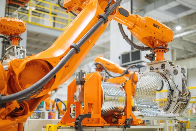 图:海尔高端柔性洗衣机智能工厂内筒生产环节