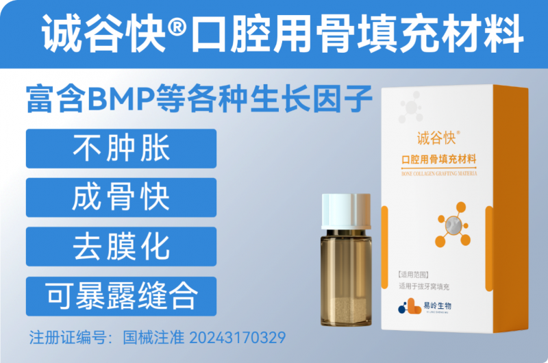 诚谷快®口腔用骨填充材料,因其成骨效果及韧性俱佳,被业界誉为“韧性胶原骨”。诚谷快?韧性胶原骨,作为口腔骨组织再生医学领域的革新之作,正引领骨再生技术迈向新高度。