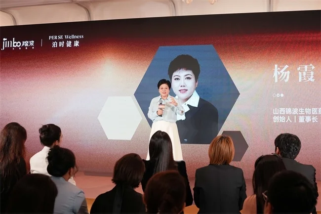 在发布会现场,锦波生物创始人、董事长、高级工程师杨霞杨总和高毓投资、泊时健康CEO黄立婉黄总代表双方品牌发表了精彩致辞。