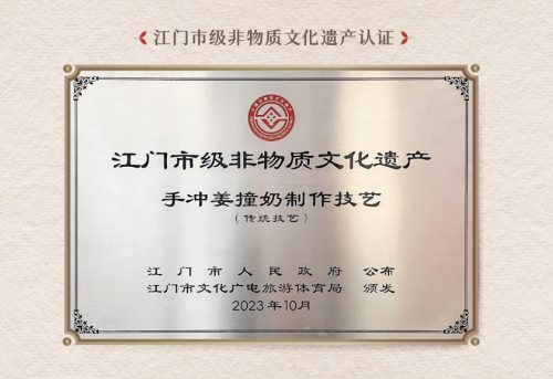 赵记传承的故事始于一门家传手艺。赵氏家族五代人传承糖水技艺,其独门绝活——手冲姜撞奶制作技艺,在2022年和2023年先后被列入江门市蓬江区区级和江门市市级非物质文化遗产代表性项目名录。