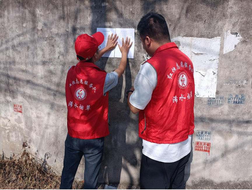 (图为进行张贴宣传单)