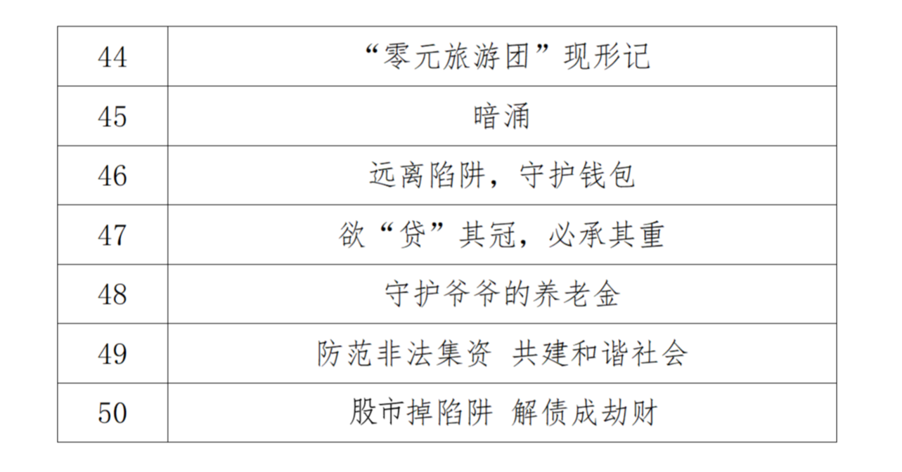 这些凝聚智慧与创意的宣传作品将陆续在各媒体平台及有关部门单位官方网站、抖音号、视频号、微博微信等新媒体平台展播,让识非、防非、拒非的意识真正深入人心,为守护人民群众财产安全、维护经济社会稳定大局持续贡献力量。