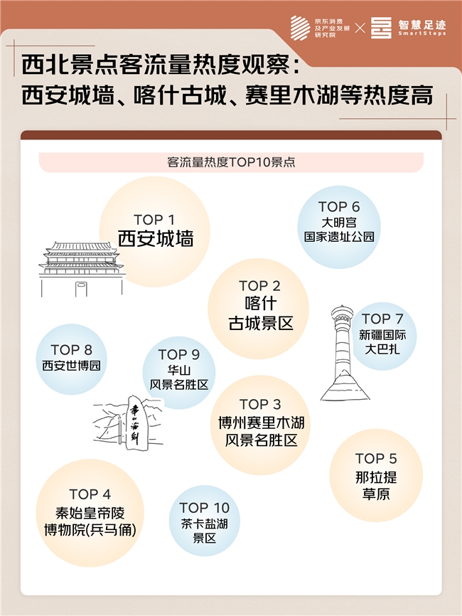 近日,京东消费及产业发展研究院联合联通数智智慧足迹对暑期西北地区的线上消费、线下景点的客流量进行观察,梳理了《京东2025消费观察之大西北的“暑期流量密码”》: