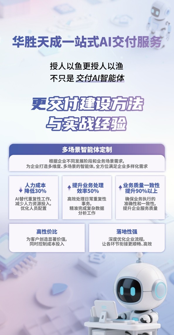 华胜天成的AI交付服务不只是交付AI智能体,更是交付建设方法与实践经验。依托开放的AI应用能力框架,客户可基于交付成果自主开发、灵活扩展,构建覆盖研发设计、生产制造、市场营销、供应链管理、客户服务与知识管理等全链条的企业级智能生态体系,实现AI自主迭代升级。目前,华胜天成已在政务、金融、医疗、制造等十余个行业积累了丰富的AI落地经验,助力企业从研发到服务全价值链的智能化升级,推动AI价值在真实业务场景中的持续释放。