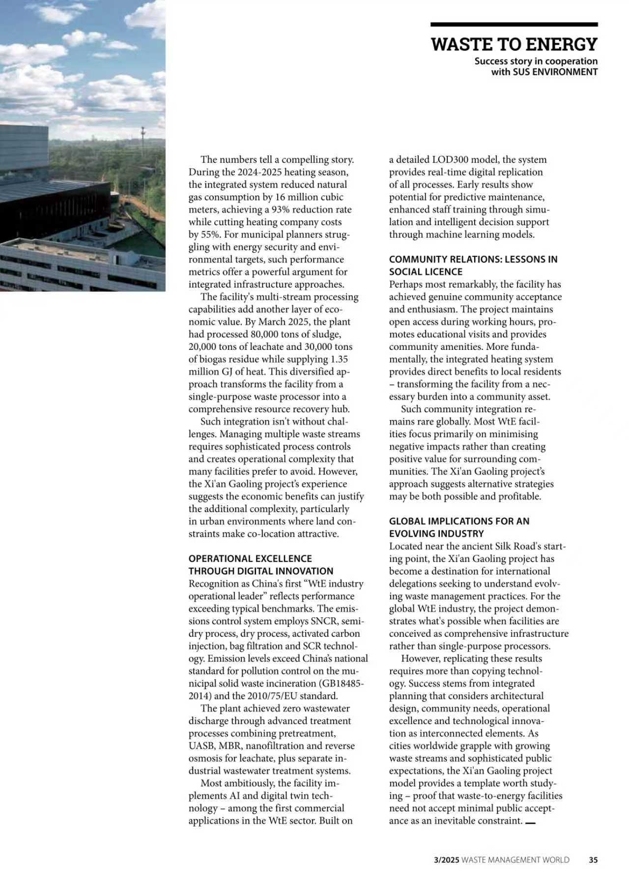 城市生活垃圾总量的高速增长,及公众对于废弃物管理的高期待,正成为全球多数城市面临的重要课题。近日,国际固体废物管理协会(ISWA)《Waste Management World》 杂志9月版(2025年第三期),深度剖析了来自中国西安的成功经验。