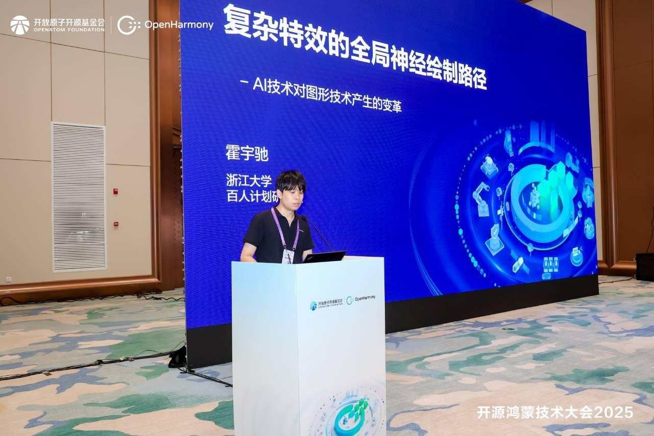 浙江大学研究员霍宇驰在分论坛上发表《复杂特效的全局神经绘制路径》主题演讲,分享在神经渲染领域的两项突破性成果。报告中,他提出神经光能传输函数(NeLT)框架,成功解决焦散、次表面散射等复杂光学现象的建模难题。团队还创新设计复合卷积核族优化算法,借助可微渲染实现毫秒级高质量滤波,在实时景深处理中较传统方法提速30倍。该研究突破了传统渲染在材质表现与动态光照模拟上的局限,可精准还原布料、毛发等复杂介质的光学特性,并在流体特效领域展现独特优势。基于神经辐射场与高斯泼溅的混合表达,影视级特效渲染效率提升两个数量级,为虚拟现实、数字孪生等前沿应用提供了关键支撑。