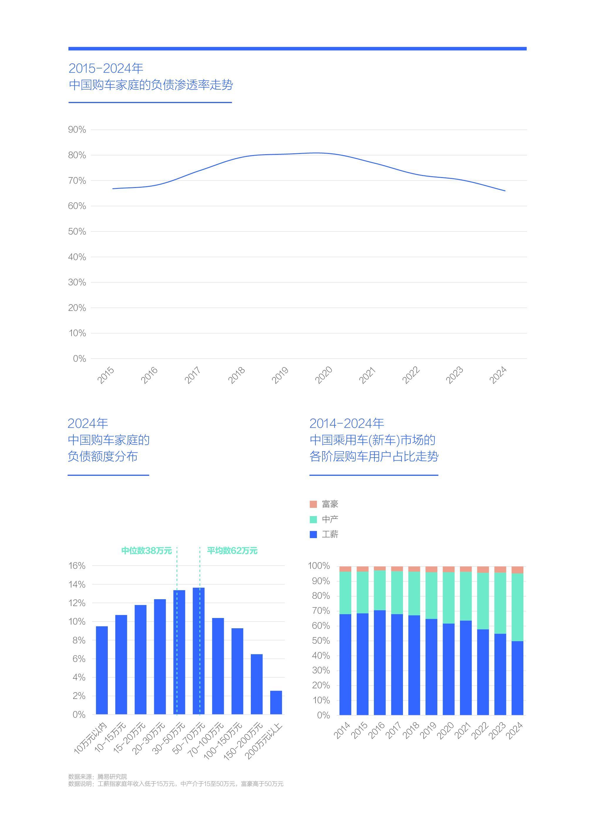2024年中国购车家庭的负债渗透率降至65.97%,户均负债62万元,压力仍较大,警惕中国车市陷入“中产陷阱”