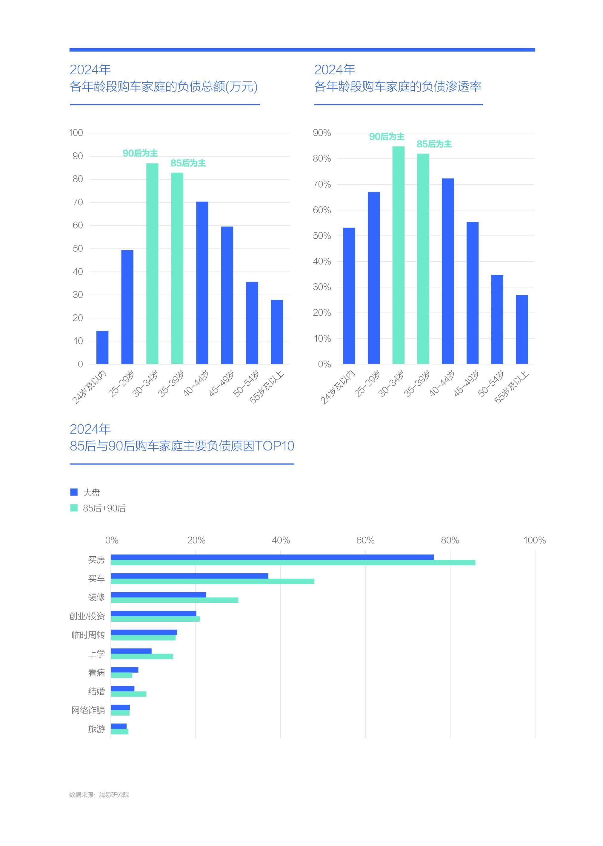 2024年中产主力之85后与90后购车家庭的户均负债均突破80万元,渗透率均逼近80%,三十而立的“青年家庭”压上加压