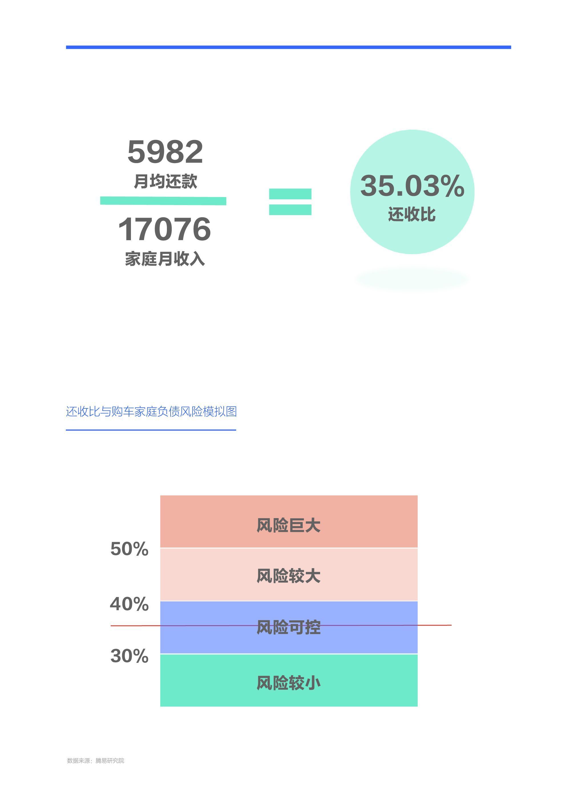 基于相关部门的积极努力,2024年中国购车家庭的月均还债降至5982元,“还收比”降至35.03%,家庭债务风险整体可控