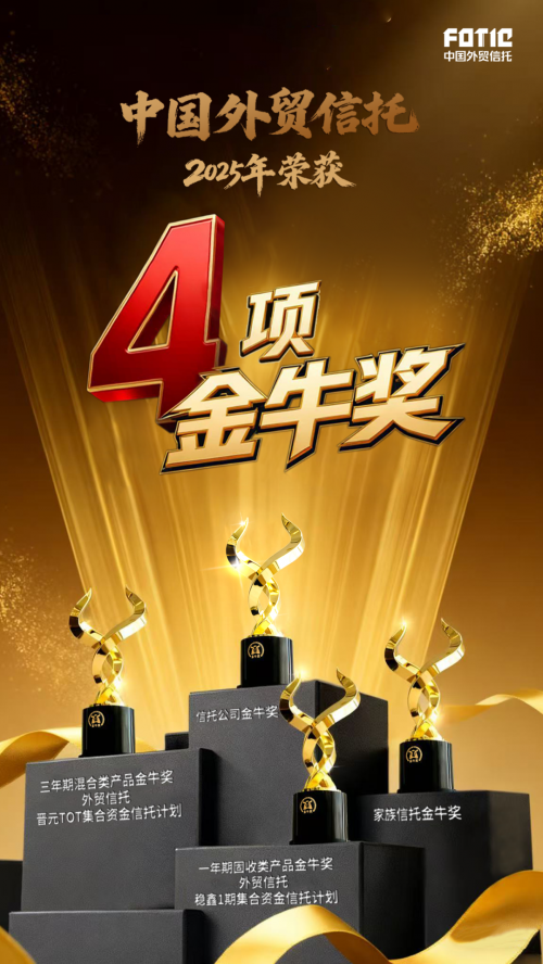 2025年9月28日,由中国证券报主办的“2025保险业、信托业高质量发展大会暨第四届信托业金牛奖颁奖典礼”在北京隆重举行。中国外贸信托凭借在信托业务创新转型与高质量发展领域的卓越表现,再度荣膺“信托公司金牛奖”。这是公司连续四年登上金牛奖榜单,累计揽获12座金牛奖杯,不仅成为业内获奖数量最多的信托公司,更以硬核实力印证了其在顺应信托业务“三分类”新政、引领行业发展方向上的标杆地位。