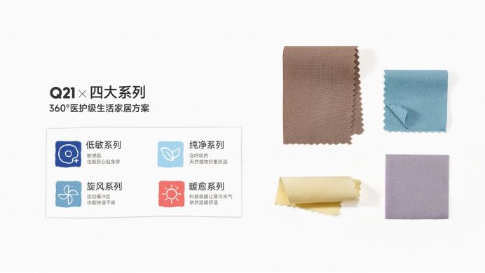 面对市场新需求,Q21以“医护级生活家居”为核心理念,围绕“自研舒适面料”与“全品类全码段A类标准”两大原则,从源头构建产品竞争力。