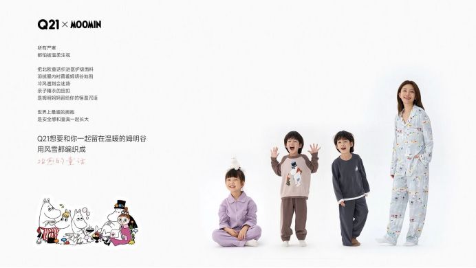 在品牌传播方面,Q21整合“线上+线下+IP联动”多渠道布局,精准触达目标用户。线上通过小红书分享专业面料知识,在抖音联合头部主播展示产品优势;线下于北京、上海、武汉等核心城市设立体验门店,并与阿嘟白泽、MOOMIN等知名IP联名,传递温暖探索的品牌理念,形成用户自传播效应。