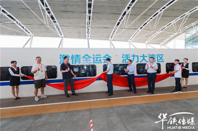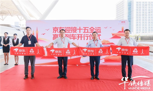随着各位领导与嘉宾共同为列车剪彩、揭幕,京东迎接十五全运高铁冠名列车正式启程。高铁这一“国家名片”,不仅将“激情全运会 活力大湾区”的理念传递到亿万旅客心中,激发民众对体育运动的热情,更将京东的品牌温度进一步深入更多消费者心中,让智慧生活服务陪伴每一段旅途。