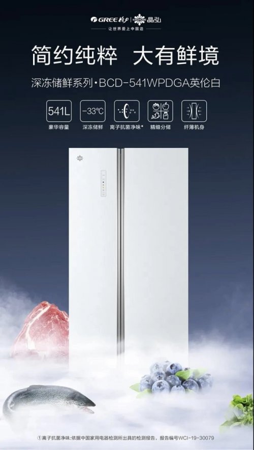 2020年,格力发布“晶弘魔法冰箱”,搭载-5℃嫩冻凝鲜、-33℃深冻储鲜双重保鲜技术,标志冰箱产品的技术升级。2023年,推出首款平嵌产品——“超冻锁鲜系列平嵌冰箱”,采用行业首创宽频全封闭活塞压缩机、-38℃超冻保鲜核心技术及PLASMA全空间除菌净味系统,进一步提升保鲜与健康属性。