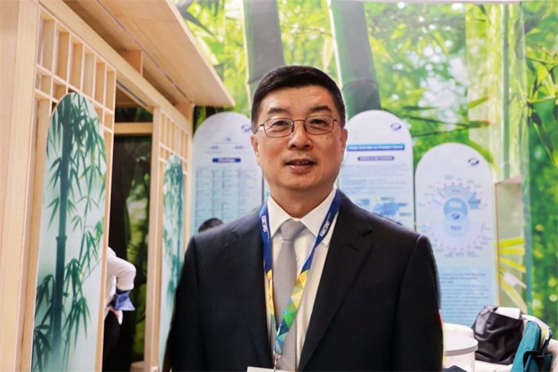 图为恒瑞医药执行副总裁、首席战略官江宁军博士在ESMO展台。