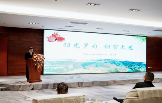 图为何玉林介绍罗甸县火龙果产业的发展情况(徐舟毅供图)