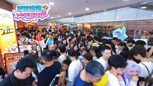 登上江苏卫视的同时,流浪泡泡的“破圈组合拳”也在全国多地接连上演。10月19日,“流浪泡泡次元嘉年华”登陆广州正佳广场,来自全国数百名Coser与本地二次元爱好者热情涌入。无论是商场前广场、主入口,还是扶手电梯,都被热情的年轻人围得水泄不通,场面盛况空前。