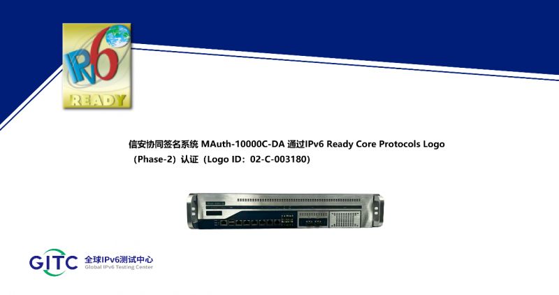 近日,北京信安世纪科技股份有限公司旗下信安NetTSA可信时间戳服务器 NetTSA、信安协同签名系统 MAuth-10000C-DA、信安零信任统一身份认证管理系统 NetAuth、信安NetCert KMC密钥管理系统、信安NetCert CA数字证书认证系统 NetCert CA、信安CSSP密码安全服务管理平台 CSSP在下一代互联网国家工程中心-全球IPv6测试中心正式通过IPv6 Ready核心协议Phase-2测试,并荣获由国际组织IPv6 Forum颁发的IPv6 Ready Logo Phase-2认证证书。