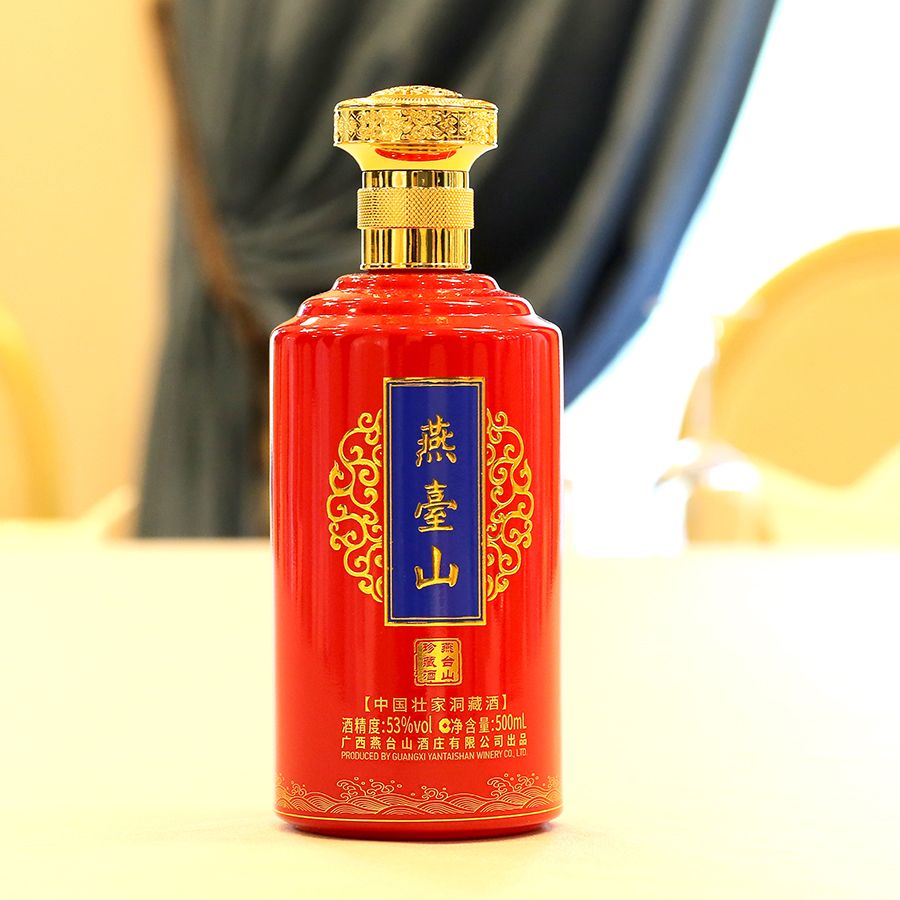 酿造工艺上,该酒严格遵循非物质文化遗产“燕台山壮家白酒酿造技艺”,经多道工序酿制后,送入燕台山酒庄天然溶洞进行长年洞藏陈化。恒温恒湿的溶洞环境使酒体辛辣味与不良气味逐渐消减,最终形成专家团盛赞的“香气典雅、绵甜爽净”的洞藏风味,每一瓶428元的珍藏酒都是时光与工艺淬炼的品质结晶。