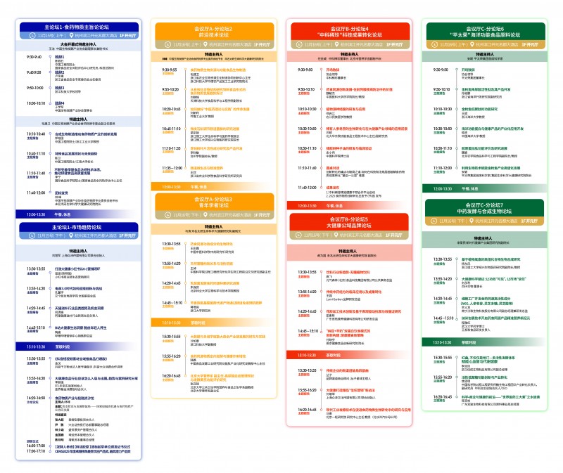 会议设置2大主旨论坛 +6大专题分论坛,涵盖 “市场趋势、前沿技术、青年学者、大健康私域营销、大健康公域品牌、中药发酵与合成生物、海洋功能食品原料” 等热点方向,深度探讨食药物质技术创新、产业新机遇与新赛道、法规新进展,为产业发展破局献策。