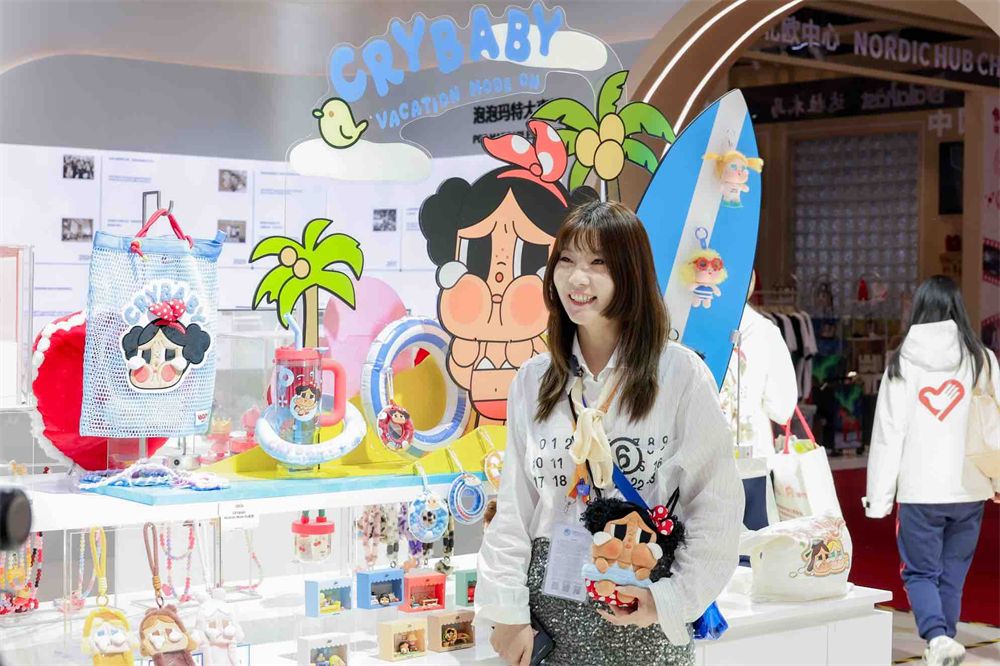 如今,泡泡玛特旗下多款IP已经成为连接全球消费者的情感纽带,并凭借独特潮流语言,生动诠释着人们对高品质美好生活的共同向往。今年进博会现场,泡泡玛特重点展示了SKULLPANDA与CRYBABY两大超人气IP。SKULLPANDA由青年艺术家熊喵创作,以宇航员头盔、双侧耳机和圆润的双腿为造型特点,传递“无垠之象”的美学理念,鼓励人们在探索中抵达真我。泰国艺术家Molly创作的CRYBABY聚焦情绪表达,倡导直面情感、勇敢前行,其情感内核在全球引发深度共鸣。多款海外限定产品亦同步亮相,从东南亚的热情闲适到英伦朋克的自由不羁,通过融入本地文化,进一步为全球消费者创造值得珍藏的潮流文化印记。