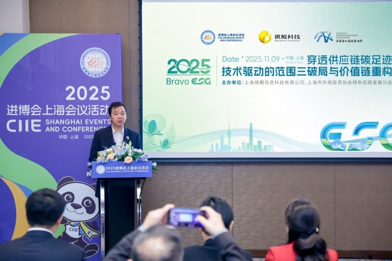 在11月9日2025年进博会上海会议活动中,由祺鲲科技与上海外商投资协会绿色低碳分会共同主办的“供应链碳足迹——技术驱动的范围三破局与价值链重构”研讨会上,来自世界500强、央国企、国际供应链示范企业的决策层共同探索供应链减排的高效协同路径。虹桥国际中央商务区管委会党组成员、副主任杨旭波和上海外商投资协会副秘书长丁遂亮出席活动并致辞。