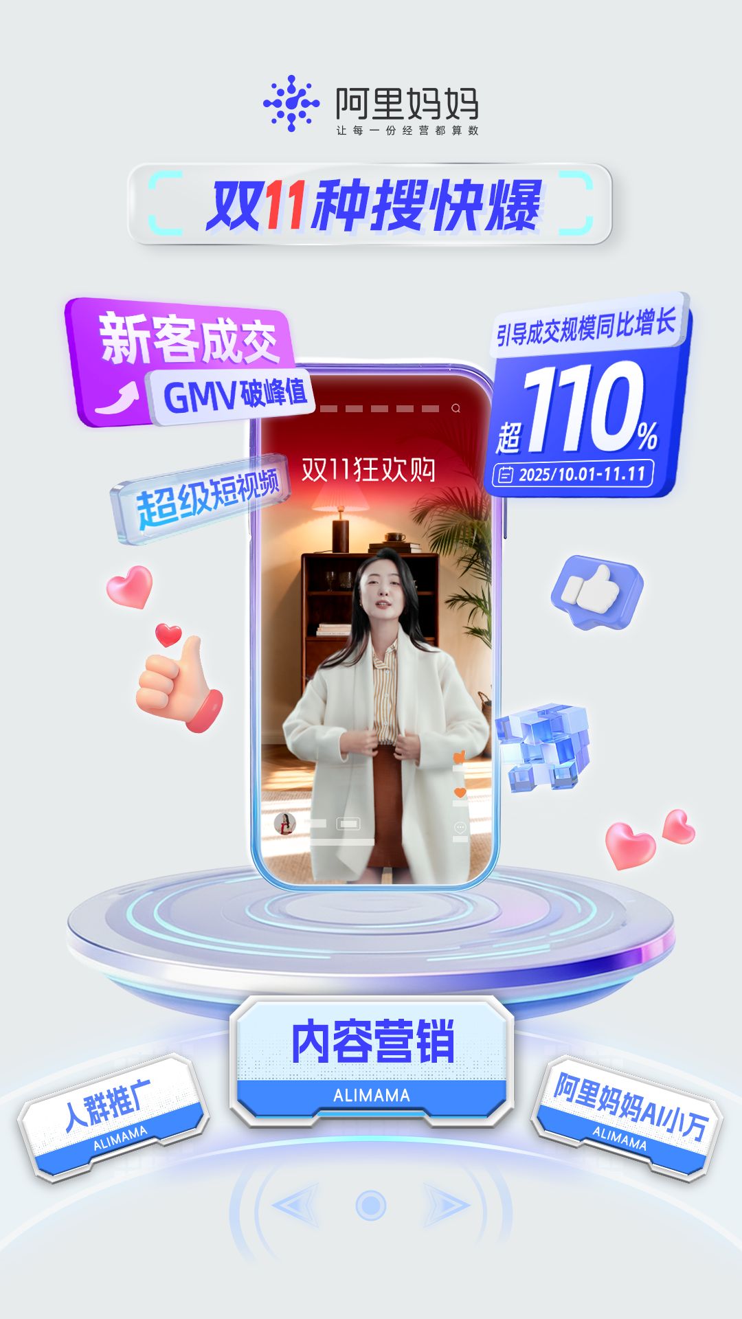 内容营销同样势头强劲,「超级短视频」与「超级直播」持续释放爆发力。10月1日-11月11日期间,「超级短视频」客户规模同比增长超120%,新客成交占比可达85%+,引导成交规模同比增长超110%;「超级直播」面向直播生态开放更多搜推电商场景优质流量,大促以来直播流量近30%,引导进店量翻倍。超级短视频「内容拉新」场景带来的新客成交GMV突破峰值,为超35%的商家带来100%全新内容成交,并挖掘2万+趋势话题机会,推动内容生意持续升温。