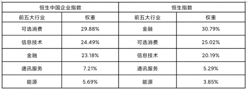 通过与恒生指数对比,可以更清晰地看出恒生中国企业指数的特点。其金融行业占比显著低于恒生指数,可选消费、信息技术、通讯服务合计占比超过60%,“新经济”与均衡的特征突出。