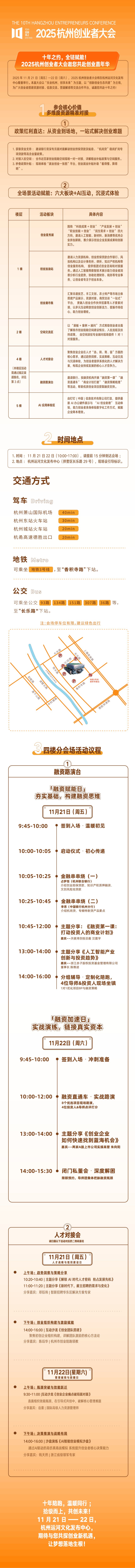 2025杭州创业者大会将于2025年11月21日(周五)—22日(周六)在杭州运河文化发布中心隆重举行。