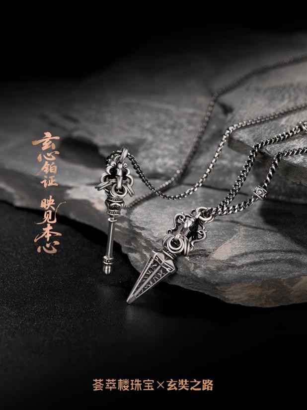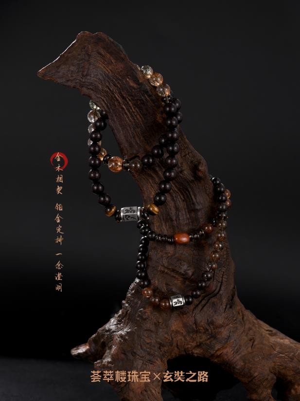 “荟萃楼珠宝×玄奘之路”系列以跨越千年的玄奘精神为内核,将铂金“永恒坚韧”的材质属性与不屈的玄奘精神深度融合,兼具佩戴价值与精神意义。产品以坚韧铂金为骨,糅合木珠、宝石与结绳等东方元素,纹蕴祥瑞,电黑塑魂,通过现代设计语言将玄奘精神转化为可佩戴的艺术符号,旨在打造铂金中式美学新范式,致敬玄奘跨越千年的求索精神。