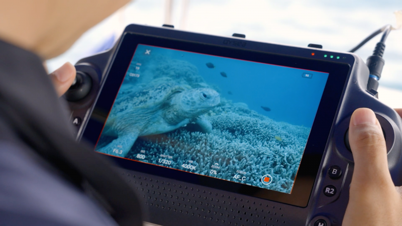 为打破这些瓶颈,鳍源科技与索尼共同打造影视级水下机器人解决方案。通过索尼电影摄影机与鳍源水下机器人的联合应用,并基于索尼Camera Remote SDK的深度开发,将水下机器人的运动控制和相机的参数调整集成于同一个屏幕之上,实现岸上远程一体化操控。摄影师可通过带显示屏的控制端完成运镜与调参操作,并可外接监视设备实现与导演、摄影指导的实时协同,在提升画面控制效率的同时,降低了专业潜水摄影的技术门槛,加速制作流程,为影视创作打开了更高效、更安全的水下影像解决方案。